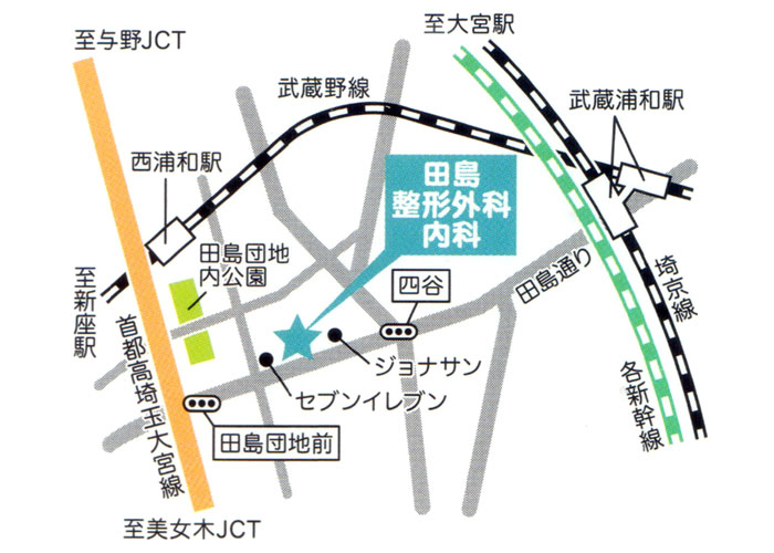 JR武蔵野線 西浦和駅より徒歩11分 JR埼京線 武蔵浦和駅から国際興業バスで5分(田島団地行き:田島通りで下車徒歩1分)